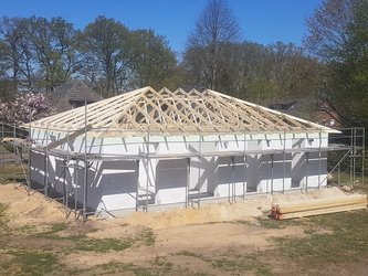 Das schöne Walmdach gibt dem Bungalow seinen Charakter. Der Bungalow 110 ist ein perfekter Ort für Menschen, die die gegenseitige Nähe lieben und zugleich ihren individuellen Platz schätzen. Hier können Sie stufenlos glücklich sein.