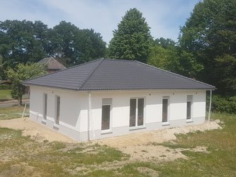 Für eine Familie mit zwei Kindern ist der Bungalow 110 ein ideales Zuhause. Er bietet ein gemütliches Wohnzimmer mit Essbereich, ein geräumiges Schlafzimmer und zwei weitere Zimmer. Alle Räume sind dank großer Fenster hell und freundlich. Mit quasi einem Schritt sind Sie mit Ihren Liebsten im Garten und können die Sommerzeit bei einem Grillabend genießen.