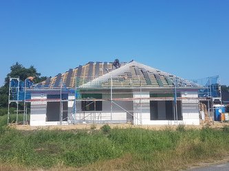 Zusätzlich bietet Ihnen der Bungalow 128 ein geräumiges Schlaf- und Kinderzimmer, ein großes Bad und eine weitläufige Küche mit praktischem Abstellraum. Das traumhafte Wohnzimmer mit seinen großen Fenstern ist der perfekte Ort zum Entspannen, bietet freien Blick in Ihren Garten und mit wenigen Schritten sind Sie auf Ihrer Terrasse im Grünen.