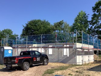 Dieser Bungalow fällt nicht nur durch sein charmantes Design auf. Die markante Winkelform ermöglicht auch einen variablen Grundriss. Die besondere Raumanordnung des Winkelbungalows 108 sowie die vielen kleinen Details machen das Wohnen für Sie zum Genuss.