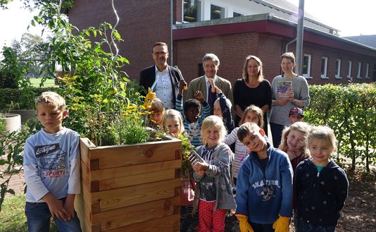 Die Grundschüler in Horstedt freuen sich über Ihr neues Hochbeet, welches Dr. Thomas Engellandt im September 2019 übergeben durfte.